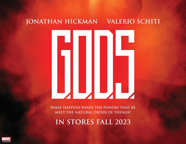 雖然現在還不知道G.O.D.S.到底是什麼東西的縮寫,但是Hickman自稱這是他至今野心最大的作品,將重新定義漫威宇宙的高等抽象存在的地位。考慮到他過往的故事,如毀滅了整個漫威多元宇宙的《秘密戰爭》(Secret Wars)、讓變種人成為世界強權的《X皇室》(House of X),這個聲明恐怕不能只是隨便聽聽。