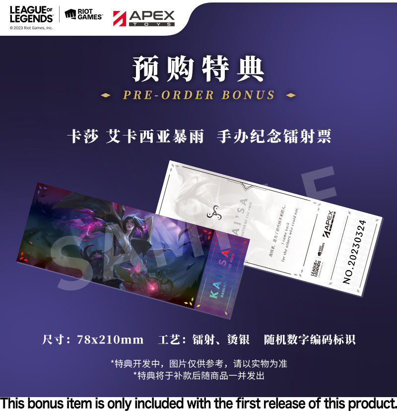 上海湃思文化科技發展有限公司玩具品牌 APEX-TOYS 日前發表了出自電玩遊戲《英雄聯盟 (League of Legends) 》的最新商品「凱莎 伊卡西亞魔雨」1/7 比例 PVC塗裝完成品!預計將於 2023 年 12 月開始發貨。