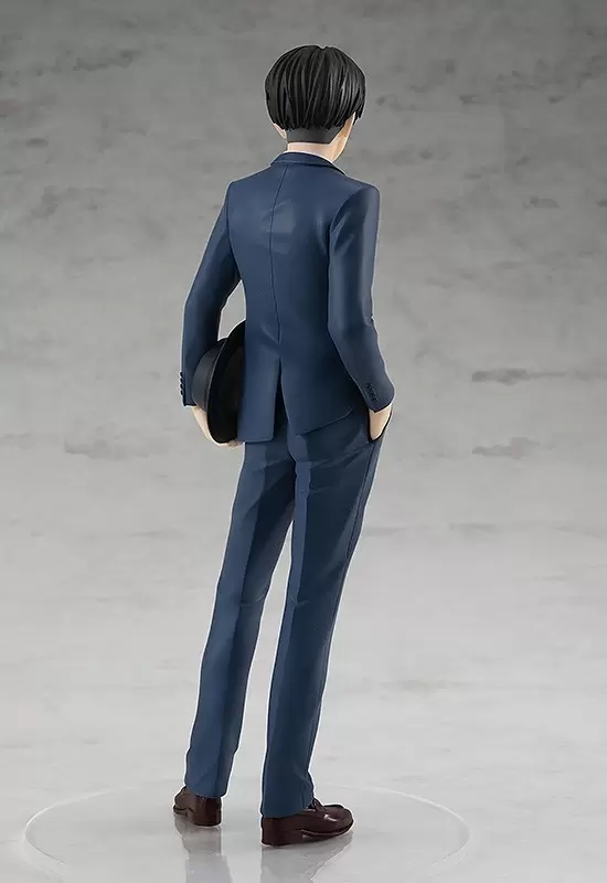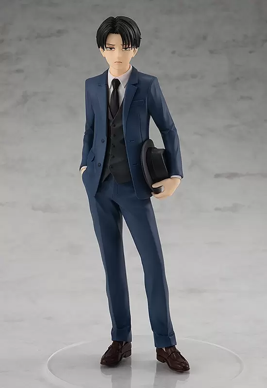「POP UP PARADE 里維(西裝ver.)」無比例 PVC 塗裝完成品,尺寸全高約 17 公分,以調查兵團一行人首次離開帕拉迪島造訪瑪雷大陸的造型為靈感,將穿著西裝的里維兵長立體化。還原招牌嚴肅臭臉與銳利眼神,一身筆挺的藍色西裝加上西裝背心、西裝帽的搭配,讓平時充一臉殺氣的兵長變得充滿現代感,合身的剪裁更是讓比例顯得高挑,看不出來身高只有一米六呢。