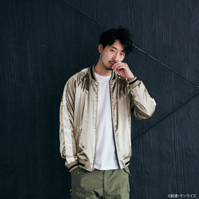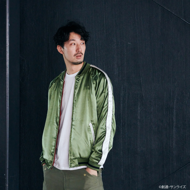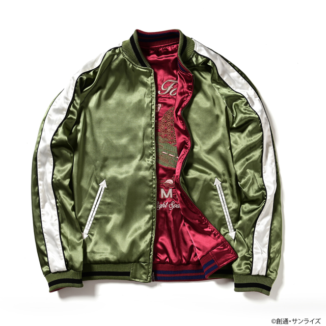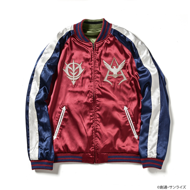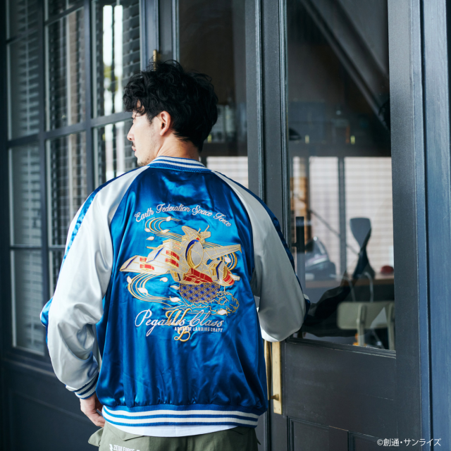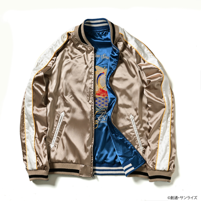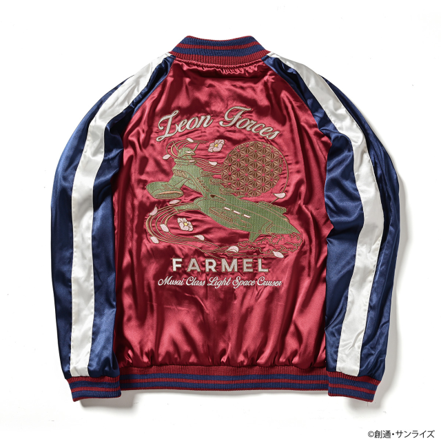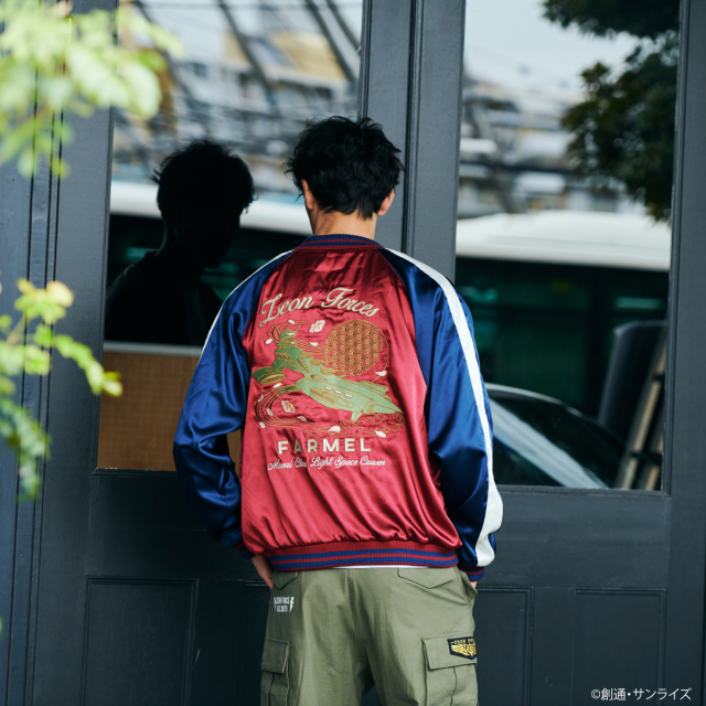 這次推出的橫須賀刺修外套,採用兩軍母艦 : 地球聯邦-白色基地 & 吉翁軍- FARMEL 的靈感設計,以誠意滿滿的大量刺繡配置的外套本體上,不論是正面的軍徽刺繡圖案以及背後的和風風格插圖,給人滿滿巧妙的完美契合感。