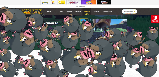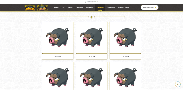 打開美國《寶可夢 朱/紫》官方網站上,你可以看到滿滿的愛吃豚從天而降(?),而帕底亞地區圖鑑上的寶可夢,也通通變成了這隻「豬寶可夢」,果然第九世代的主角才是愛吃豚嗎?