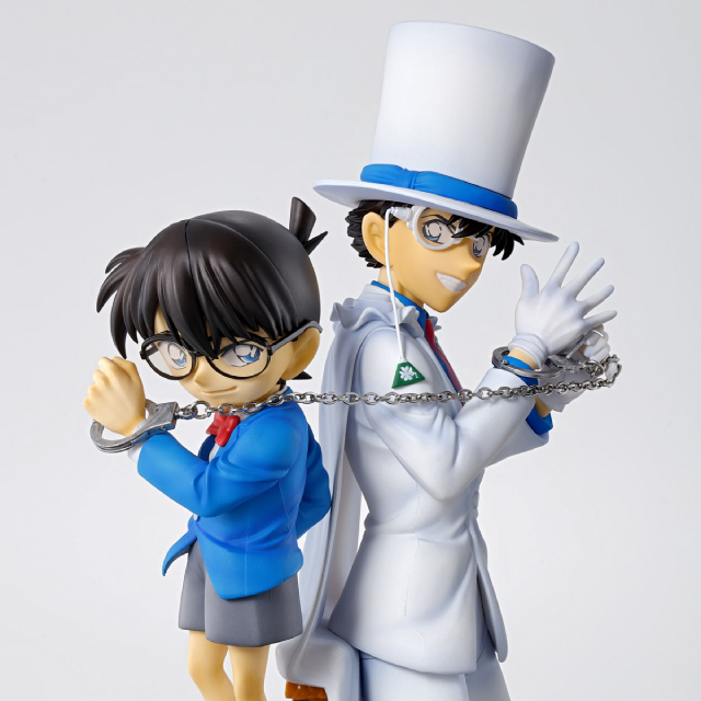 小學館與萬代攜手打造的「名偵探柯南 DETECTIVE VOICE FIGURE 江戶川柯南 vs 怪盜基德」有聲模型,以漫畫原作插畫為基礎,由青山剛昌老師完全監修,徹底再現柯南和基德的對峙場景!兩人被手銬銬在一起的造型以壓倒性品質立體化,好基友的生動表情、特徵的眼鏡與手銬等細節都有精心的刻畫。除此之外,更收錄了超過 350 種的台詞音效,將兩人 26 年來在動畫、劇場版中的對話,都以新錄製的豪華規格呈現!