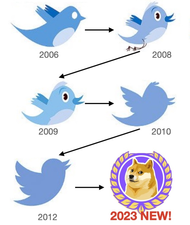 後來進入2010年,便開始有了我們所熟知的Logo雛形,最後才進入到現在人人熟知的意象商標,並且就這樣維持長達10年之久。只是誰也沒有想到,Twitter後來不僅被特斯拉CEO伊隆·馬斯克(Elon Musk)收購,從嘬天開始還莫名其妙地換下Logo,便成了現在的「Doge迷因」。