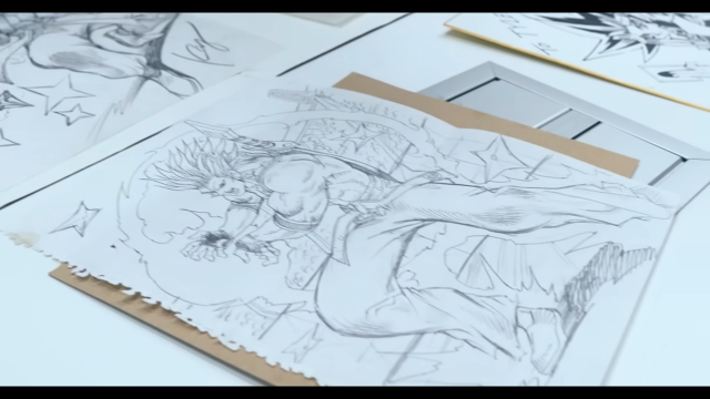 一開始是由高橋老師畫出兩張草圖,來讓Tyler Gressle做出選擇,決定好的那張便成為大家所看到的「Tyler the Great Warrior」最終版本,並且還附有高橋和希老師的親筆簽名,保存在壓克力卡磚裡整整18年。