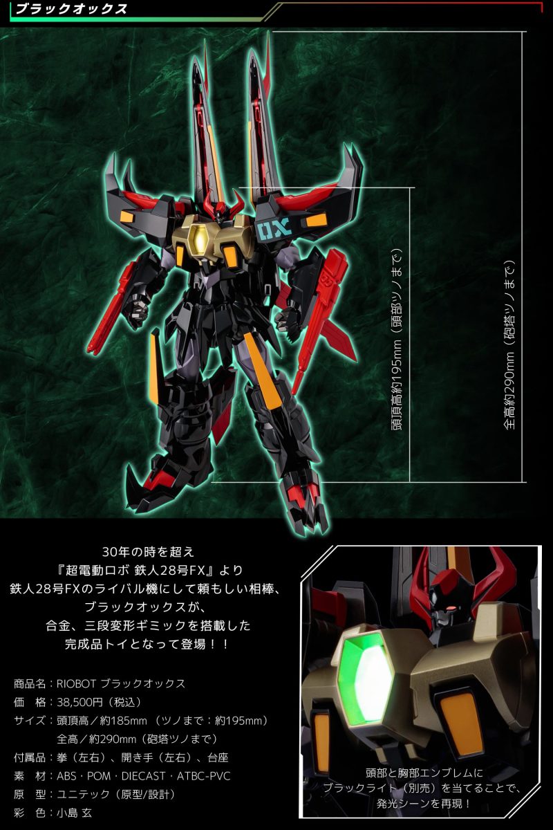 由日本模型商千值練所推出的人氣合金可動系列『RIOBOT』繼鐵人28號FX & 鐵人17號鳳凰後,今日再度發表了出自《超電動機器人 鐵人28號FX》的第二彈商品「黑牛(鐵人29號OX)」預計於 2023 年 11 月發售的消息。