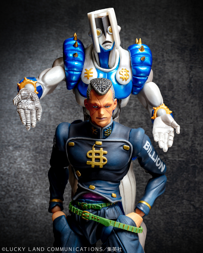 本次將大人氣的「雕像傳說 虹村形兆&極惡中隊」以全新包裝再販推出,尺寸約為高 150 mm,還原大哥特色的金髮與麥克筆髮型,替身極惡中隊也以精緻可愛的尺寸打造!另外弟弟「超像可動 虹村億泰、轟炸空間」也再次登場,組合賞玩出各種精彩的場景。