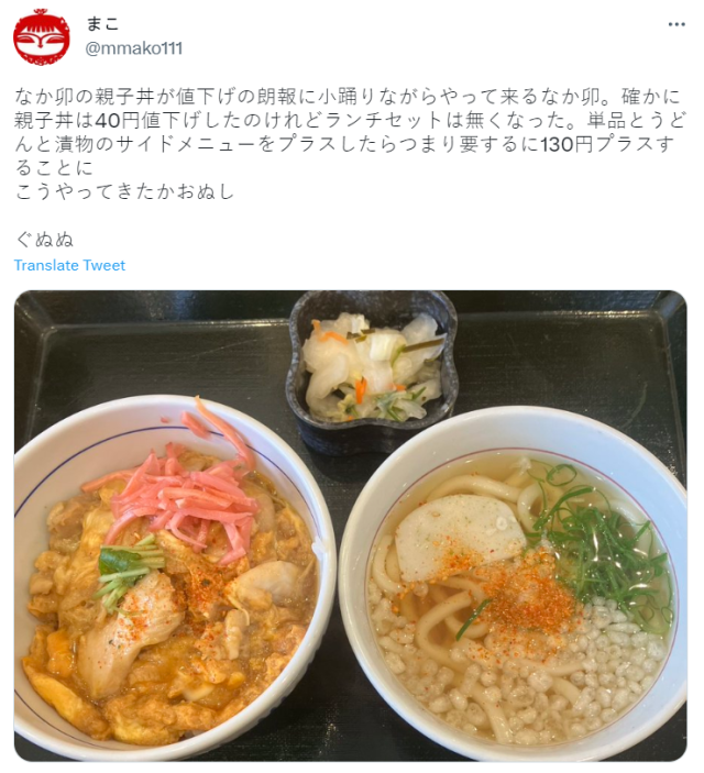 不過也有網友發現,原本なか卯的便宜午餐套餐,卻也悄悄下架了,如果要享用原先的套餐組合,只能透過單點補足,其實比起親子丼價格的下調來說,這樣還是比套餐貴。