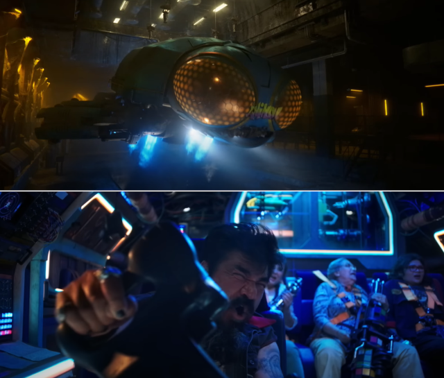 預告中可以看到一個藍甲蟲造型的飛船,應該也是參考第二代聖甲蟲自己研發的載具。不過電影中可能改成海梅和家人一起打造使用的。