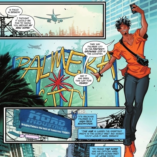 就像大都會、高譚市等一樣,帕瑪拉市 (Pamera City) 是DC宇宙中虛構的城市,位於美國德州。這座城市非常特別,它是為電影設計的全新虛構城市,不過在今年2月被回流到《藍甲蟲》漫畫中出現。