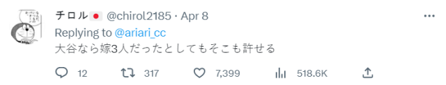 當然音柱跟大谷一樣都是二刀流 ( 音柱是拿著兩把刀戰鬥;而大谷翔平則是投打雙棲 ),那麼...音柱有三個老婆,大谷翔平應該也...可以吧 www。