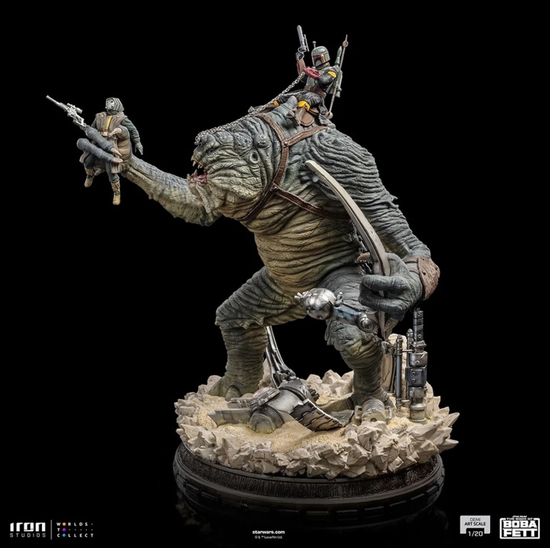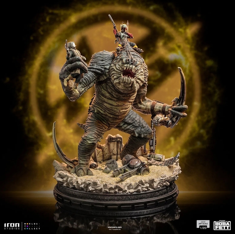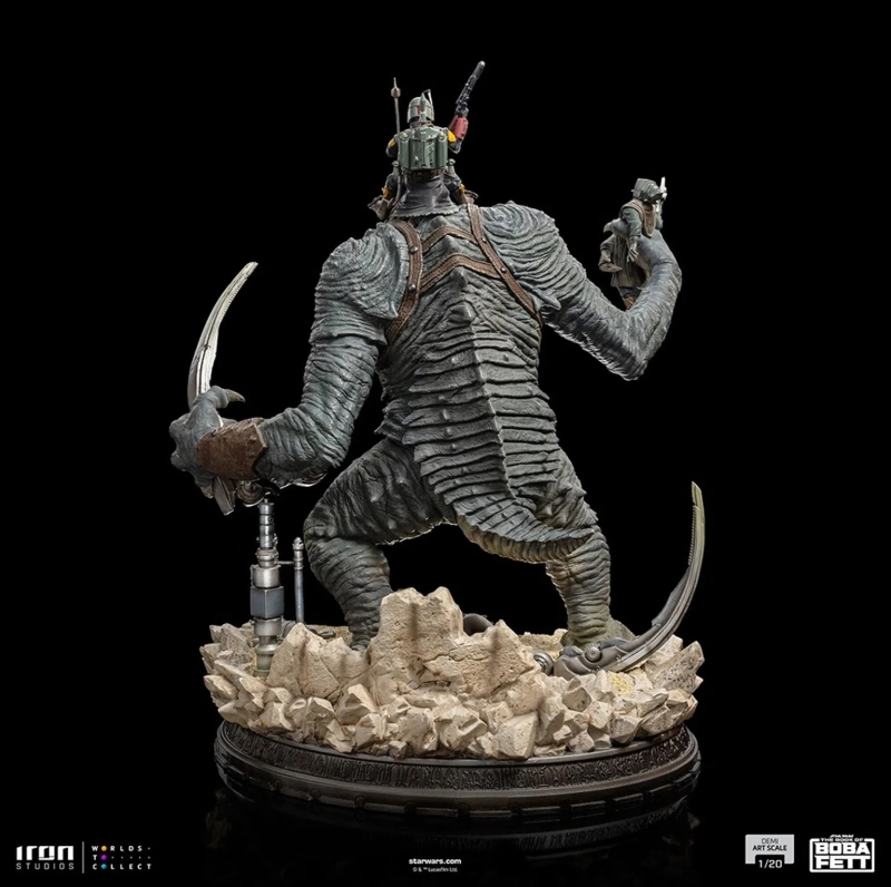 巴西雕像廠牌 Iron Studios 早先一口氣發佈了多款出自各領域作品的雕像商品,本篇將帶來 Demi Art Scale 系列、以《波巴·費特之書》為題打造的「波巴費特&龍戈獸」(Boba Fett & Rancor)1/20 比例全身雕像!預計 2024 年第一季發貨。