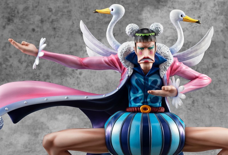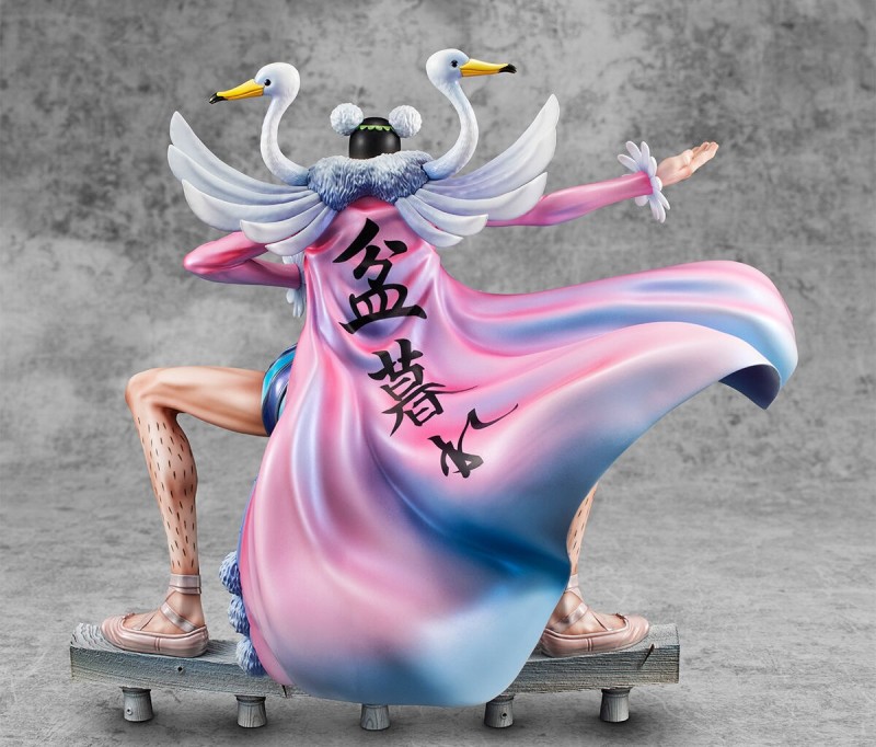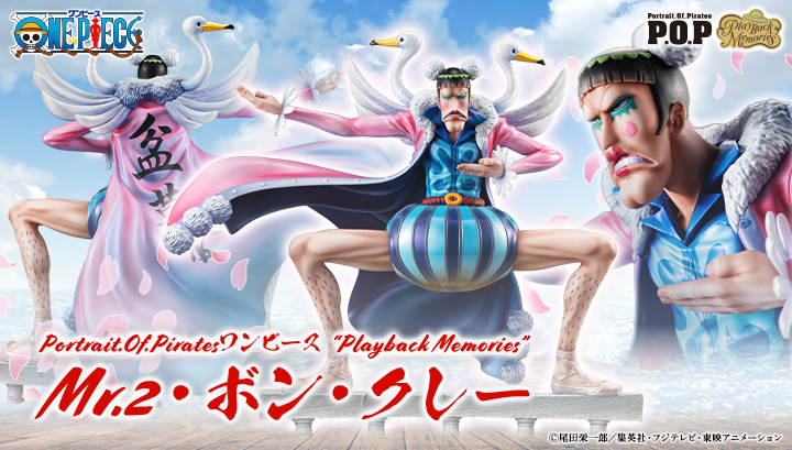 「Portrait.Of.Pirates 航海王 Playback Memories Mr.2·馮·克雷」PVC塗裝完成品,採用了在《阿拉巴斯坦篇》中,掩護魯夫一行人逃走時,決心貫徹自己的人妖之道、令人印象深刻的名場面!以挺身面對海軍大砲的英勇姿態為造形,還原 Mr.2·馮·克雷 身穿天鵝芭蕾舞服的特徵。背後寫有「盆暮れ」字樣的粉紅色大衣生動飄揚,並施以精彩的珠光漸層;臉上的濃妝、肩膀上的天鵝也精緻呈現,下面一大包令人無法忽視。腿部除了刻劃出逼真寫實的筋肉以外,腿毛也傳達出強大的氣勢!