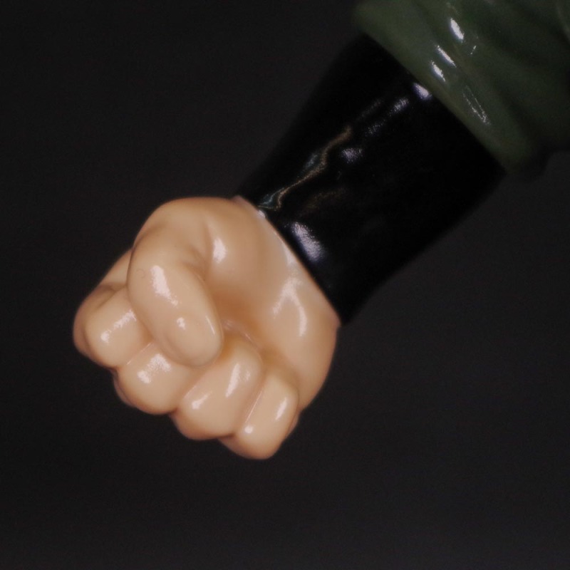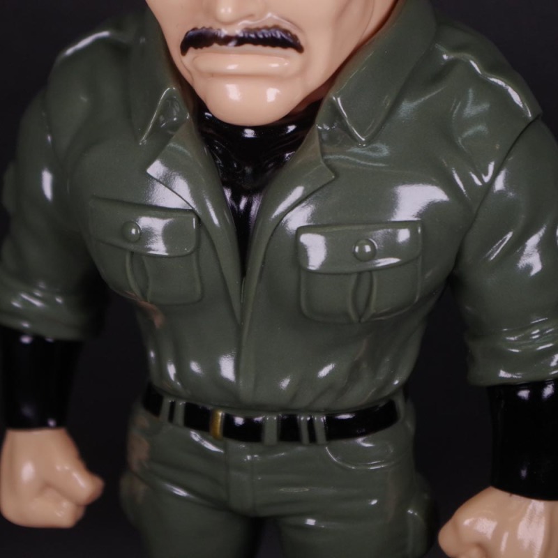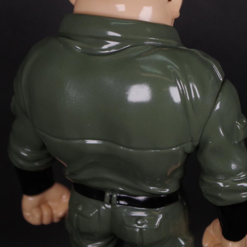 這次上色版的「海坊主」軟膠高約 24 公分,在身形比例的拿捏上強烈凸顯了魁武的上半身,即使玩具化之後依舊可以感受到虎背熊腰的視覺效果、壯到不行!再現了身穿墨綠色軍裝、頭戴墨鏡的經典造型,墨鏡上的光澤、眉頭深鎖的神情、衣裝的皺褶......都相當出色,雙手也設置了可動機構,可以簡單地把玩一番~推薦給喜歡《城市獵人》的玩具人。