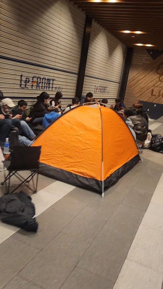 ▼ 更有人直接在排隊現場搭起帳棚來休息。