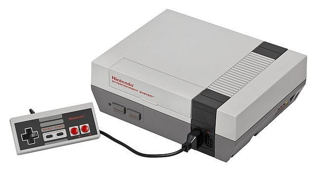 這裡瑪利歐操作的機台是黑灰造型的歐美版任天堂『Nintendo Entertainment System(簡稱NES)』,而不是日本與台灣玩家印象中的紅白機『Famicom(Family Computer,簡稱FC)』。
