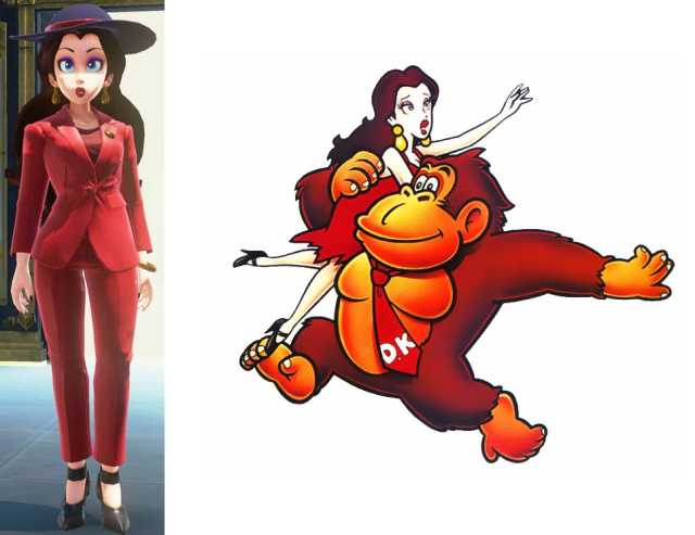 有意思的是,波琳一開始的設定是 "Jump Man" 也就是瑪利歐的女友,後來瑪利歐獨立推出遊戲世界後,有了碧姬公主的出現,使得波琳變成了前女友。