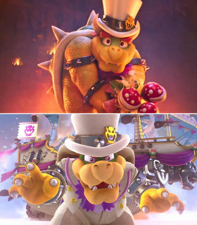 為了保住蘑菇臣子們的性命,碧姬公主答應和庫巴結婚,這一切當然是眾人串通好的計畫。然而這整段婚禮橋段,包括庫巴的禮服等設計,都是取自《超級瑪利歐:奧德賽》遊戲中。