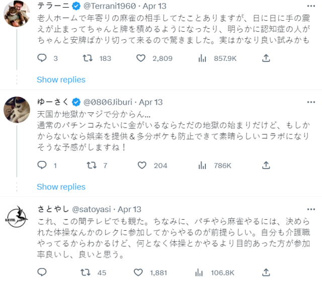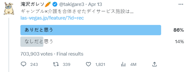 在推特投票理,網友更是壓倒性的贊同這樣的配置,不僅讓老人家可以受到照顧外,更可以活絡腦袋,減低失智可能 ( 畢竟賭博就是要動腦 )。