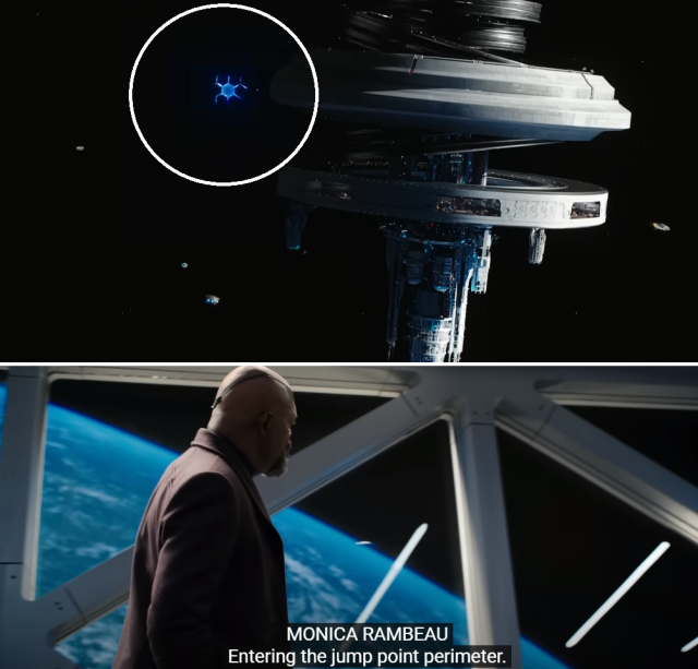 莫妮卡試圖進入的「跳躍點」(Jump Point) 是MCU中穿越宇宙的六邊形中繼站。在《星際異攻隊》與《復仇者聯盟》系列均時常出現。
