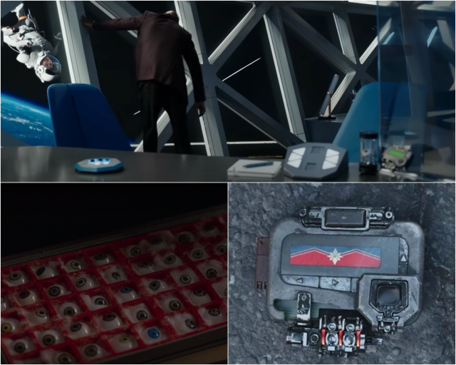 根據這支預告的標註,我們得知這個太空基地就在地球之上。而這組編號跟《驚奇隊長》中卡蘿降落地球時顯示的一樣。