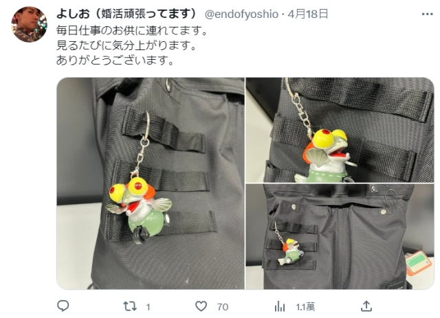 ▼「我每天上班都帶著小鮭魚,看到他心情就會變好」。