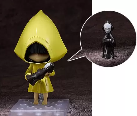 「黏土人 小六」,尺寸約高 10 公分,還原小六在遊戲中穿著黃色雨衣、低頭戴著帽子沒有露出全臉的模樣,緊閉的嘴巴與光著的腳ㄚ也如實呈現,雖然可愛但仍透著陰沉詭異的氛圍。配件附有打火機、鑰匙和拿著香腸的地精Nomes,可以賞玩遊戲中讓人印象深刻的....進食場景。