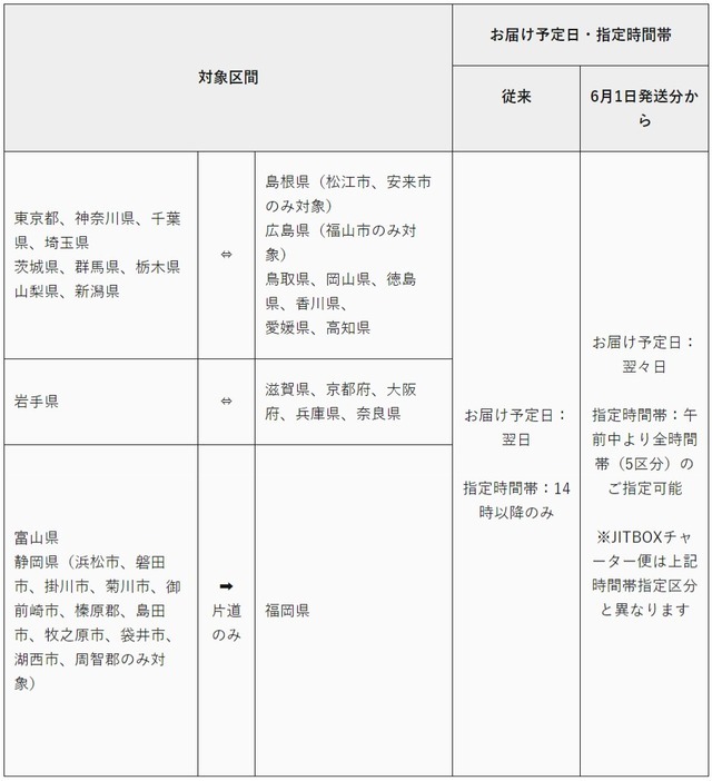 實際上從黑貓的公告表格可以看出來,他們原先「隔日可達」的配送距離其實相當長,比如說,無論是從東京和鳥取間互寄、岩手和京阪互寄,都可以隔日抵達。