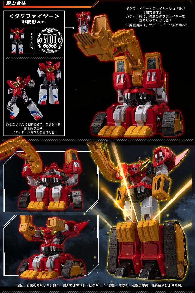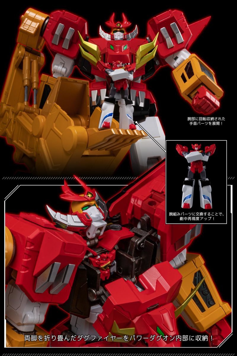 「METAMOR-FORCE 威力達古王」採用 ABS、PVC、合金...等材質製作並擁有 20 公分高尺寸。上部身軀與下肢無需替換零件即可變形,肩部與腕部則是藉由少量替換零件達成變形,上腕部的剩餘零件可收納至履帶內。藉由精密機構能夠再現合體前的火焰挖土機、達古火焰,特別是達古火焰全高僅 2.65 公分卻擁有全身可動關節能把玩頭部四肢。特徵的怪手機械臂也具備靈活的可動與液壓桿構造,前端能替換鏟斗、鑽頭、鉤爪三種模式!