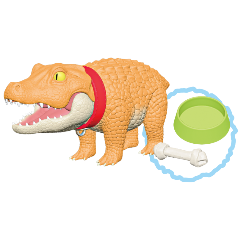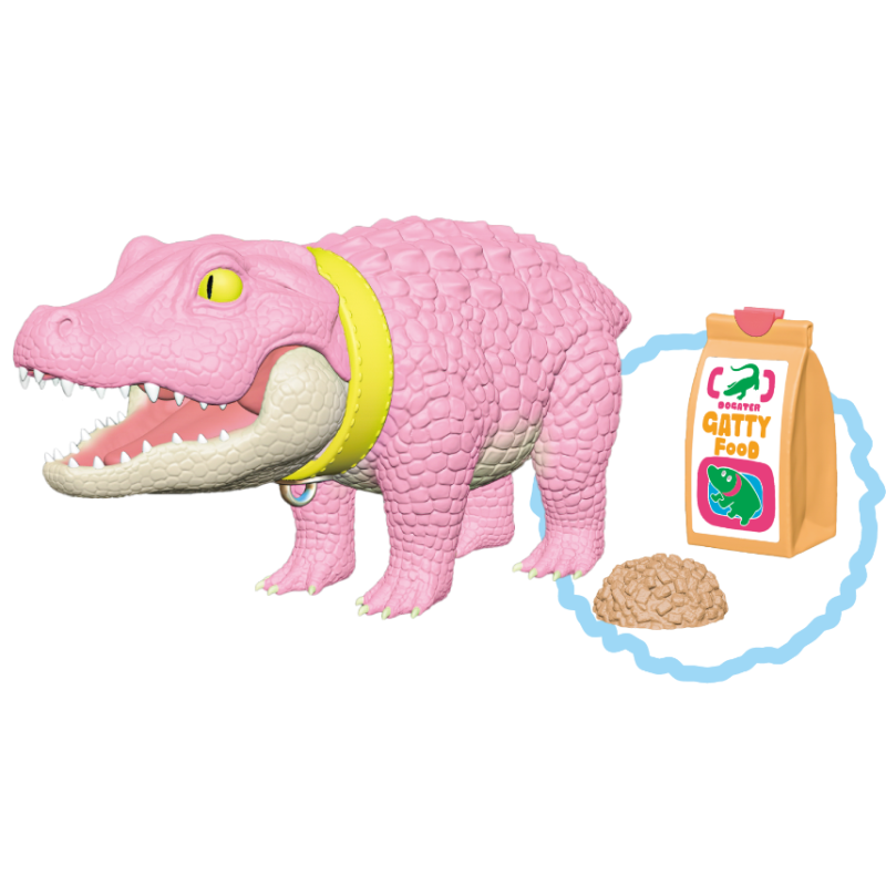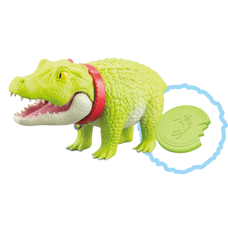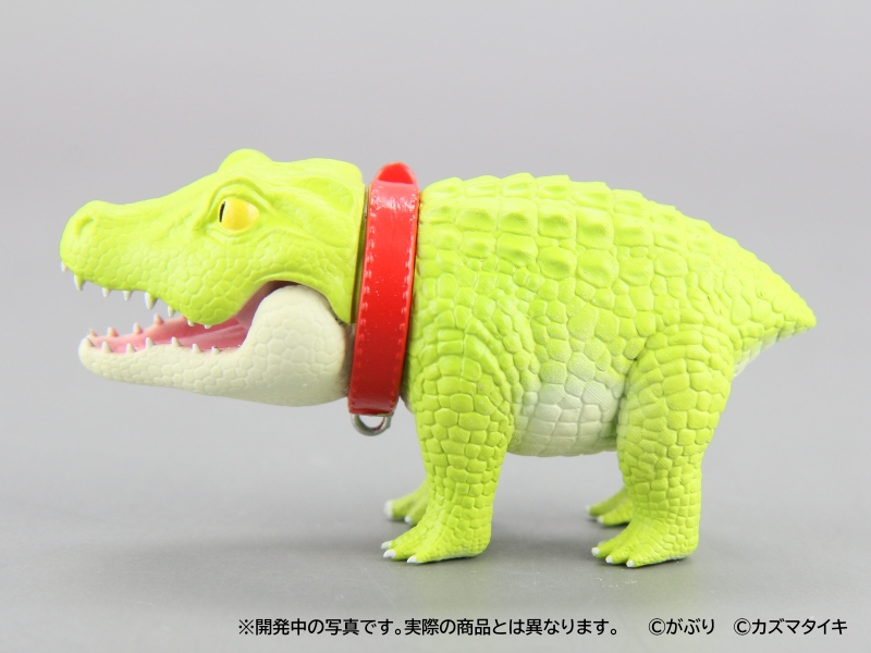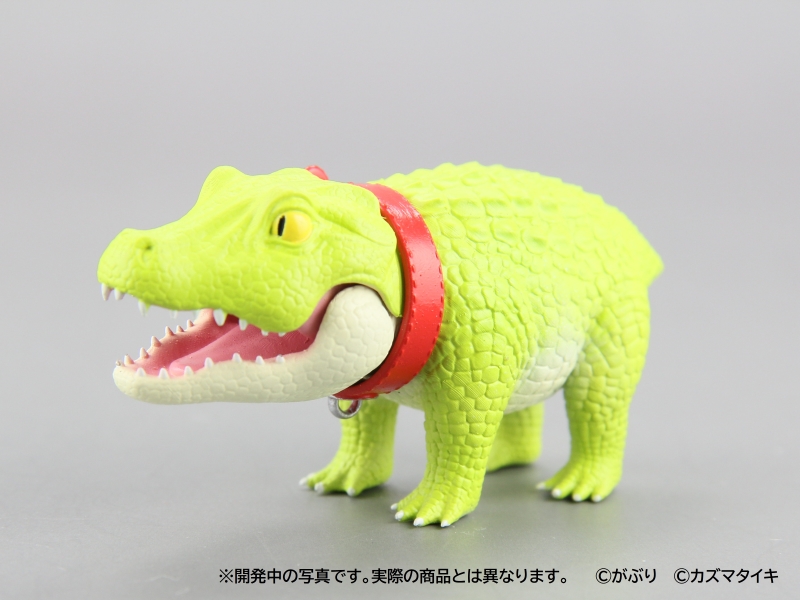 一反兇猛常態、不僅四肢短小還讓你繫上項圈的「狗狗鱷魚」高約 3.3 公分,長度則來到在轉蛋玩具中算是頗具存在感的 6.5 公分,設計部分由 がぶり 負責、原型則是請到 カズマタイキ 操刀,在以可愛比例重新詮釋體態的同時也仔細形塑出寫實的皮膚紋理,短短的尾巴更是一大萌點!除了嘴巴可以開闔之外,脖子位置還設有可動關節能夠轉動,俏皮感再提升;四種款式當中雖然鱷魚本體只有顏色改變,但是附上的配件內容都不相同,複數收藏絕對是相當可以。