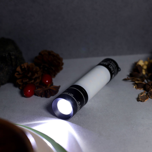使用上除可以作為露營燈外,頂端也有燈泡配置,可以變成手電筒使用,能調光線強度與投射型態,非常便利。