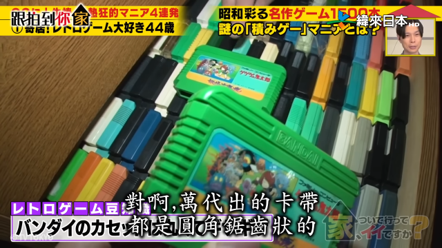 大概在幾天前,緯來日本台在YouTube上釋出《跟拍到你家》節目內容,當中就走訪到一位住在寄居町的44歲遊戲收藏家的家中,一進去只有5坪的房間內,可以看到滿堆的置物櫃、箱子裡,一打開還能看到相當壯觀的紅白機卡帶。