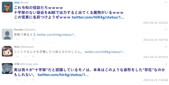 這陣子以來,AI 繪圖技術引起日本網友熱烈討論,從「midjourney」、「Stable Diffusion」到「NovelAI」,現在就算在 Pixiv 也可以看到用其作出的繪圖,就算有些許爭議仍有不少人投入其中嘗試創造性。不過最近推特上,有網友嘗試 AI 繪圖「教堂祈禱」,原先創作出不錯的作品,但後續嘗試取消「十字架」的指令,卻產生截然不同的結果,引起不少網友熱議,表示 : 「原來十字架有這麼強大的効果」