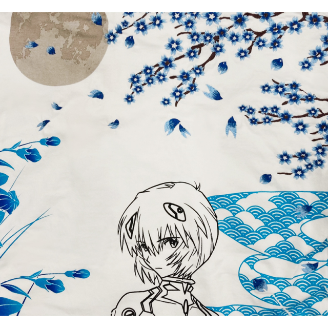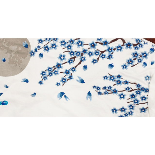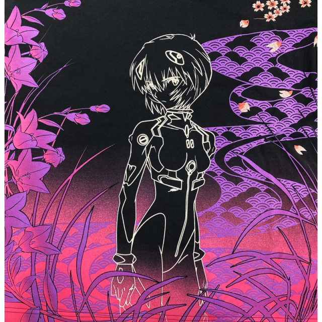 刺繡使用在正面左胸前的零號機 LOGO 上,而整體櫻花與綾波零的印刷採用「拔染」製作,擁有良好的透氣性,更是展現出品牌的高級質感。