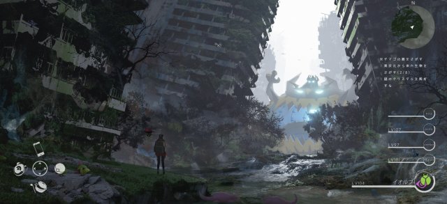 雖然瞬間一看,突然有種「我是在玩《尼爾》嗎?」的錯覺,但看到那隻木木梟,又想到2022年出的《寶可夢傳說 阿爾宙斯》,就覺得這樣的風格似乎也不是不能跟《寶可夢》這個IP做結合,可能就比《阿爾宙斯》多個更具野生生態、會攻擊人的氛圍,然後再加入更為自由的探索要素,整體上就可以更加豐富,這樣的遊戲系統,縱使不是出在本傳遊戲似乎也沒關係。