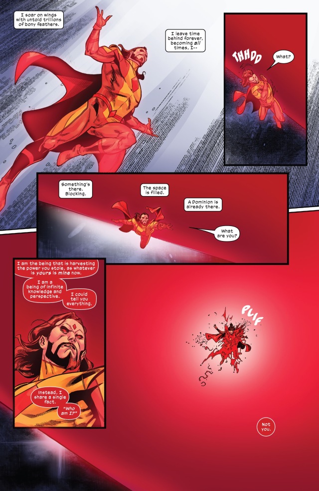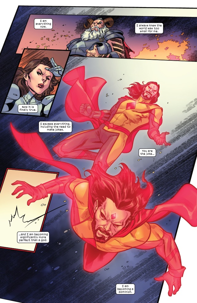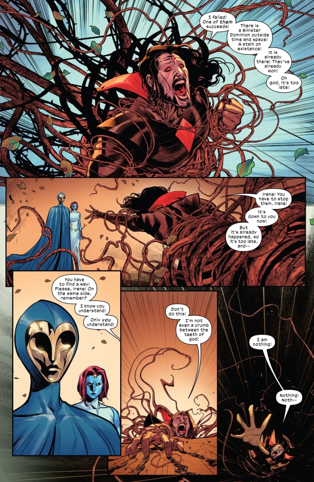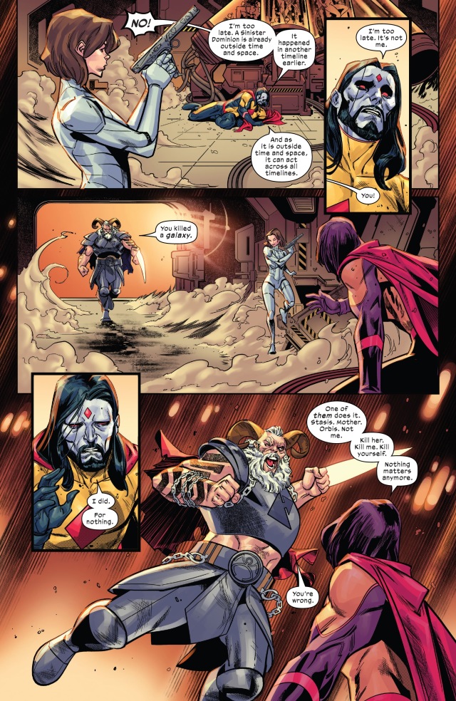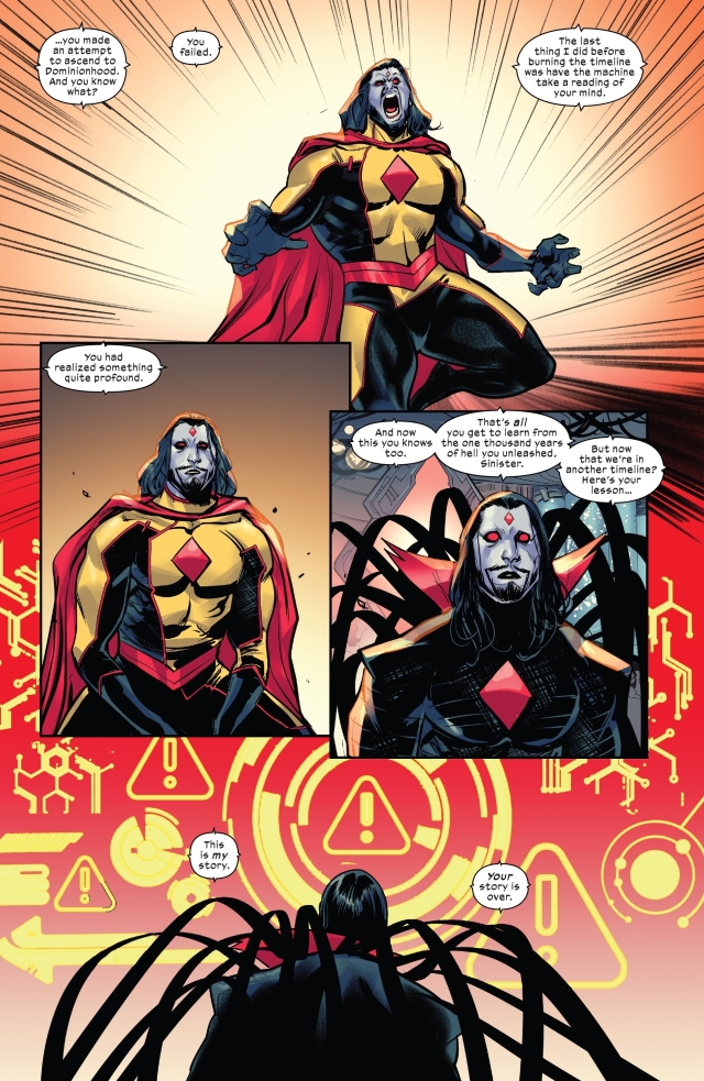 而現在問題仍在。四位變種人領袖遭到囚禁,重生程序因此被暫停。在外面的某時某地,凶兆先生的「手足」之一即將已經成為超越時空間的霸權,掌控包括地球在內的宇宙空間。