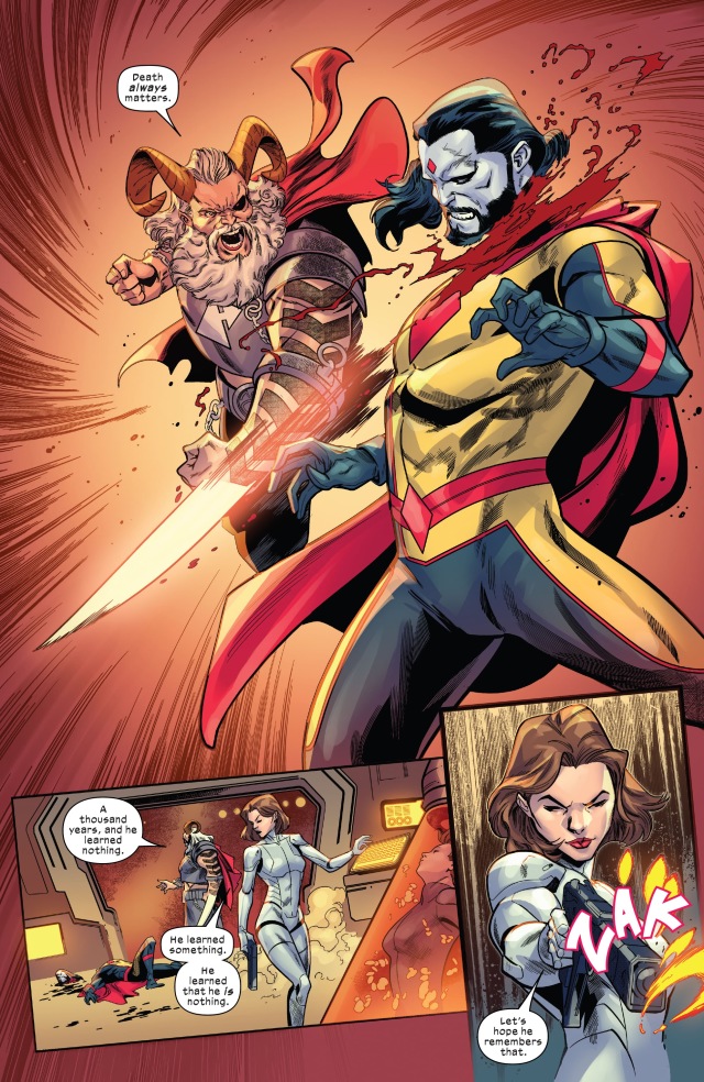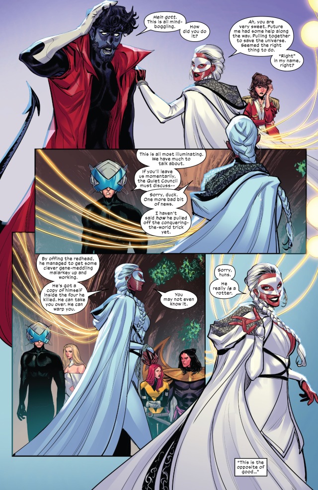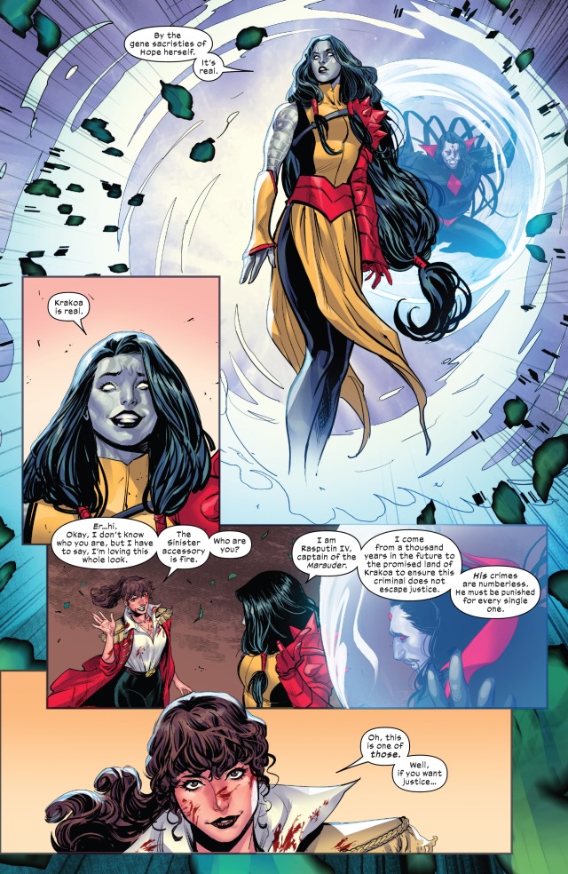 所以,凶兆時間線最終並不是沒有造成任何影響。正義主母的魔法病毒改變了一切,讓凶兆上傳的資料以外的事物也得以回到過去;特別是從當年《Powers of X》第一期就登場,受到廣大粉絲喜愛的拉斯普京IV這個角色,這次也在一百年後的未來出生,更成功加入了現代的漫威宇宙。