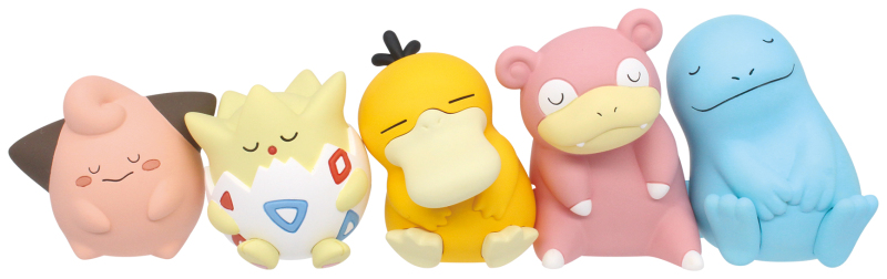 此次推出的「靠肩Fig. 寶可夢3」收錄了皮寶寶、波克比、可達鴨、呆呆獸、沼王等 5 種寶可夢,有著嬰幼兒印象的皮寶寶、波克比當然就像被天使之吻一般睡得香甜,而可達鴨、呆呆獸、沼王這三種因為呆滯神情而常被類比的寶可夢,這次也彼此靠在一起睡著,真的超級可愛!