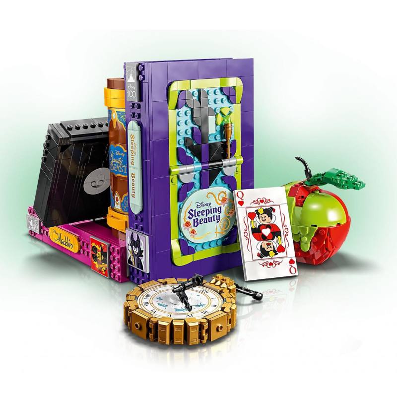 樂高人偶的部分總共有四位,包含前面提到的《白雪公主》之「壞皇后」,以及《睡美人》的「梅菲瑟」、《阿拉丁》的「賈方 (紅精靈型態) 」、《美女與野獸》的「加斯頓」;加上在《睡美人》、《阿拉丁》故事書上的「迪士尼100」紀念標誌,絕對值得收藏。