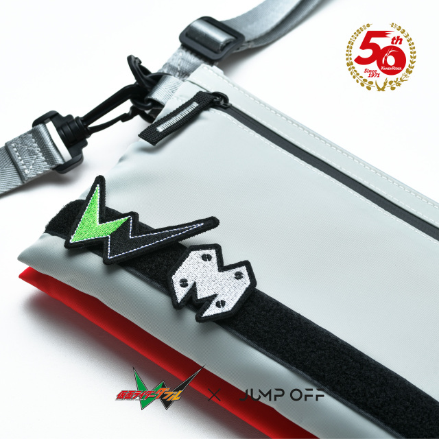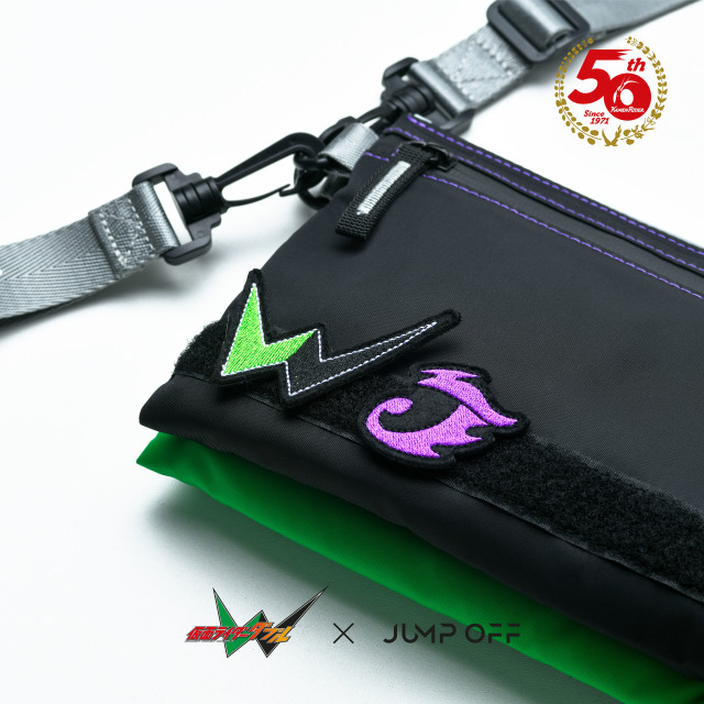 這款限量版斜跨包就如Kamen Rider W的設定,可以將代表兩個元素的小包組合起來,同時也能分拆成兩個單獨收納袋使用 ! 若擁有三組,三組元素之間還可以按照影集裡面出現的組合更換組合 !
