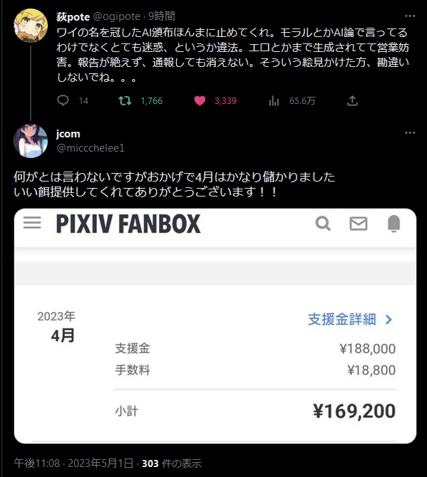 雖然無法驗證這位 jcom 自稱靠繪師餌料營利一個月 16 萬日幣是否屬實,但的確可以看到 AI 繪圖衍伸出的問題所在,根本上還是人心的貪慾造成像這樣的現象。但也卻因為如此,現階段的繪師們也開始對於這些惡意人士與無良業者,不得不加倍防範…,只能說未來可能會有更多難以臆測的怪現象了QQ。