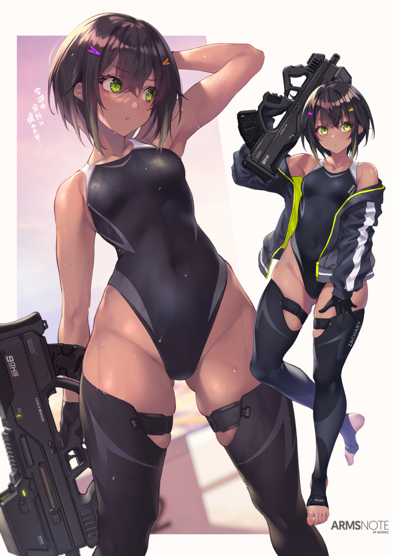 由繪師深井涼介創作的畫集《ARMS NOTE》建立在一個虛構的現代社會,這世界的女高中生們攜帶各類高科技裝備、槍械就像我們隨身帶著手機一樣稀鬆平常。此次登場的「游泳部的部長」則是 2021 年夏季發表的新角色,實力優秀深受部員們信賴。相較 162 公分高的後輩自己的身高僅有 147 公分,雖然看起來很可愛,但部長經常為自己的個子嬌小而苦惱。
