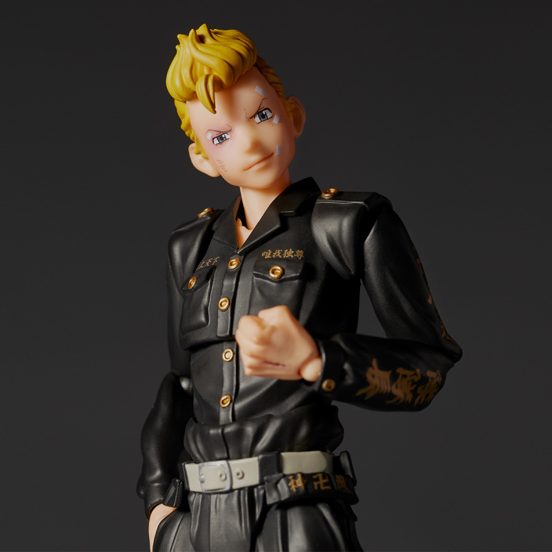 這款海洋堂推出的Amazing Yamaguchi花垣武道,是以主角花垣武道在故事中期,於場地圭介死後,繼任「東京卍會」一番隊隊長時候,身穿特攻服的造型為外型實體化的可動玩具。全高約15.5公分,其特攻服上的燙金文字,包括兩袖部分與背後,都清楚地印上,在表情零件方面,有四組可以替換,把武小道的各種情緒表露無遺,搭配替換手部零件,以及靈活可動的關節,能擺出的姿勢相當多,另外也有專屬地台支架。