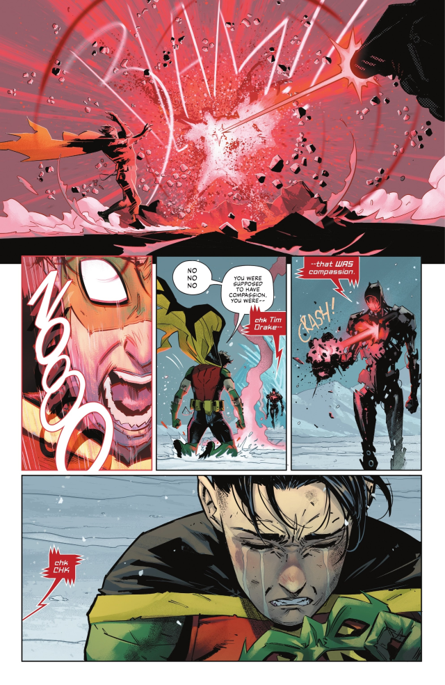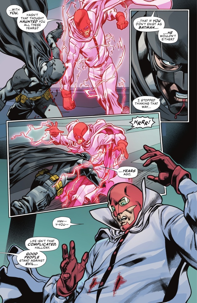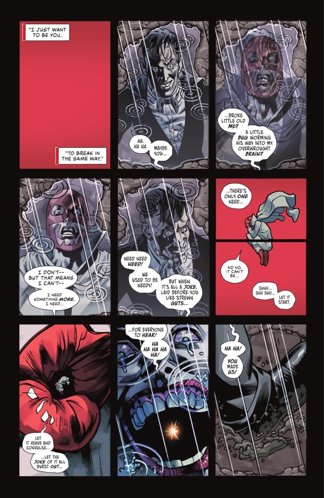 現在他理解了這一點,心態立刻轉變。但是蝙蝠俠仍然需要阻止他,因為即使他無法成為小丑,紅面具仍然是個可怕的瘋子。