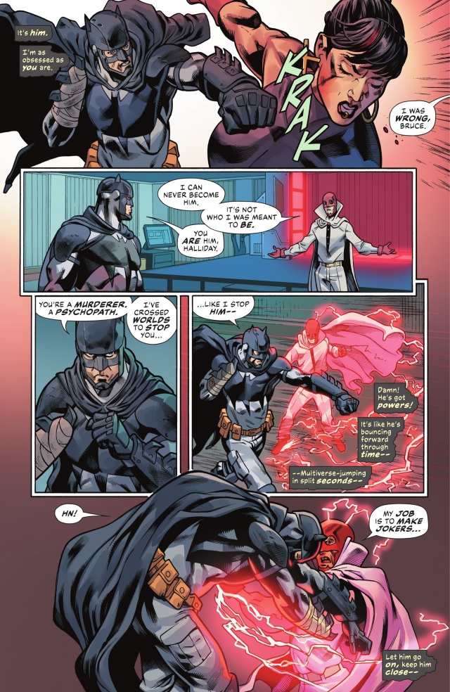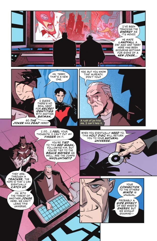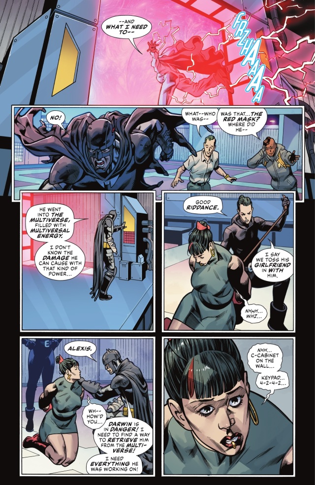 紅面具及時帶著滿身的多元宇宙能量逃脫,前往了其他世界。現在布魯斯非得追隨著他的能量蹤跡,才能夠在他造成更多破壞之前及時阻止他。
