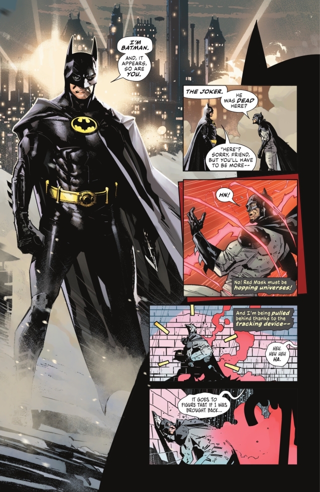 原來這裡是提姆‧波頓(Tim Burton)和米高‧基頓(Michael Keaton)的《蝙蝠俠》電影系列的世界!但是在兩人有更多互動之前,布魯斯又被拉到另一個宇宙去了。