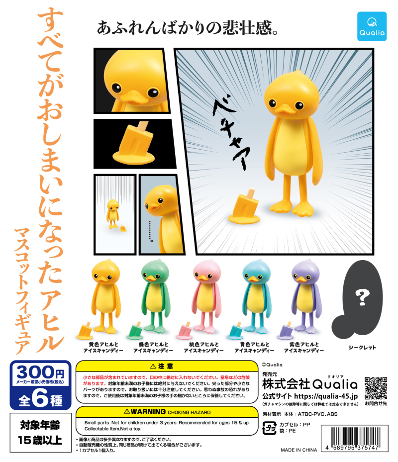 「一切都結束了的鴨子」轉蛋,以傻眼鴨鴨、懷疑鴨生的搞笑表情呈現,除了生無可戀的神態之外,搭配掉在地上的冰棒更能讓人感受到無言的悲壯感!收錄有黃、綠、粉紅、藍、紫五種顏色,冰棒的配色也與體色呼應,另外還有未公開的隱藏版!