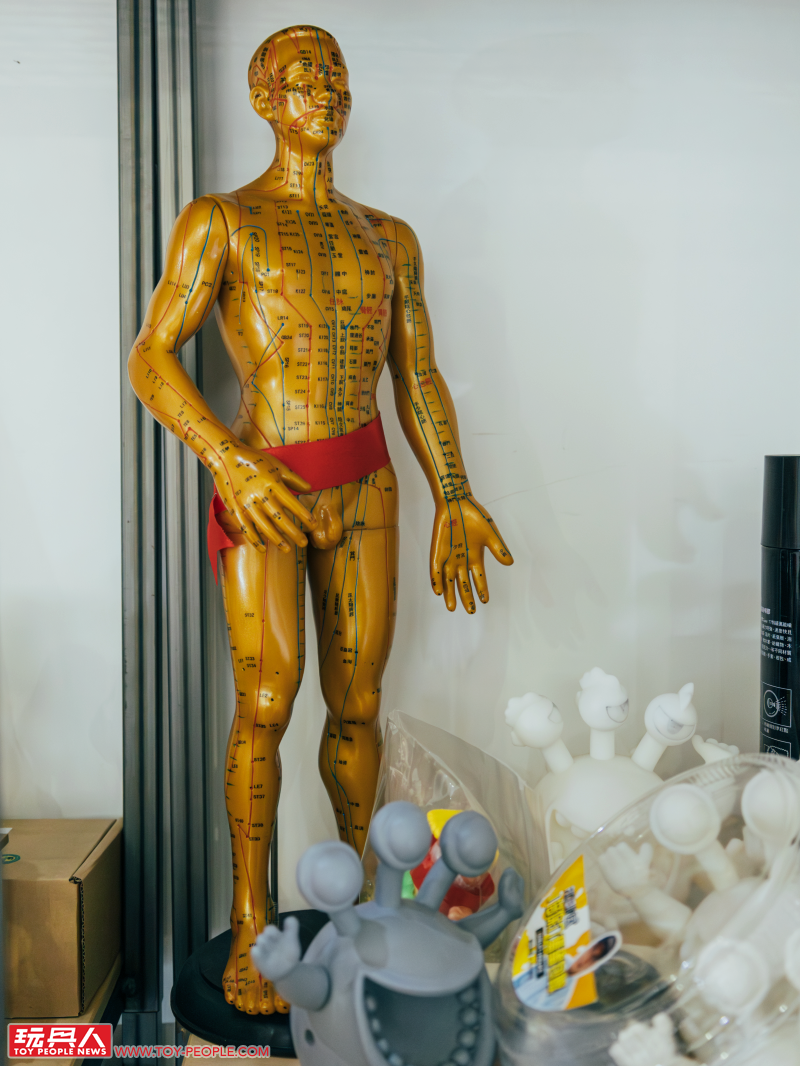 ▼ 羅賓在 2021 年與台灣服飾品牌 Plain-me 合作的一檔活動「羅賓堂 樸然子中醫診所」中,裡頭有推出以中醫診所常見的銅人像為題設計的保介,相信其中的參考資料就在這,一般來說很不容易在設計師工作室看到這個吧!(笑)