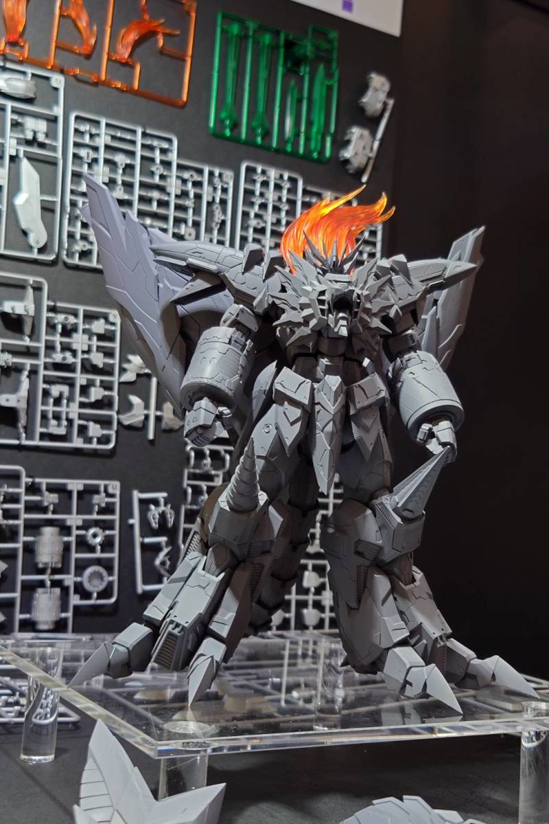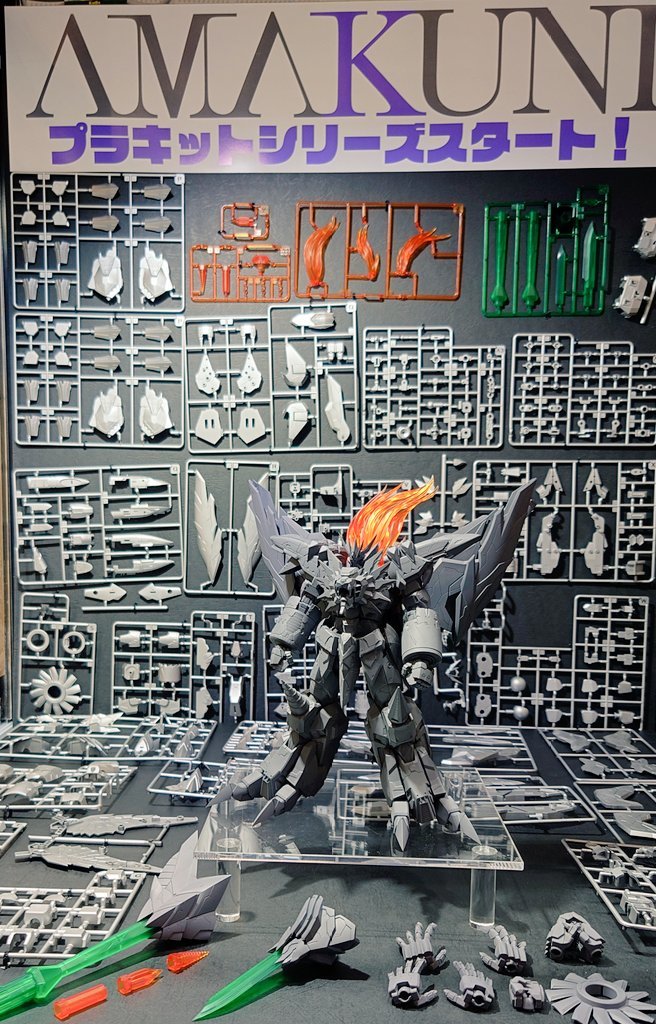 組裝模型版的「AMAKUNI機神 始源我王凱牙」目前已公開各個零件的分件設計與組裝完成後的模樣,製作上徹底還原合金版的體態、細節造型,並重新設計出組裝模型規格最適合的尺寸與機構。
