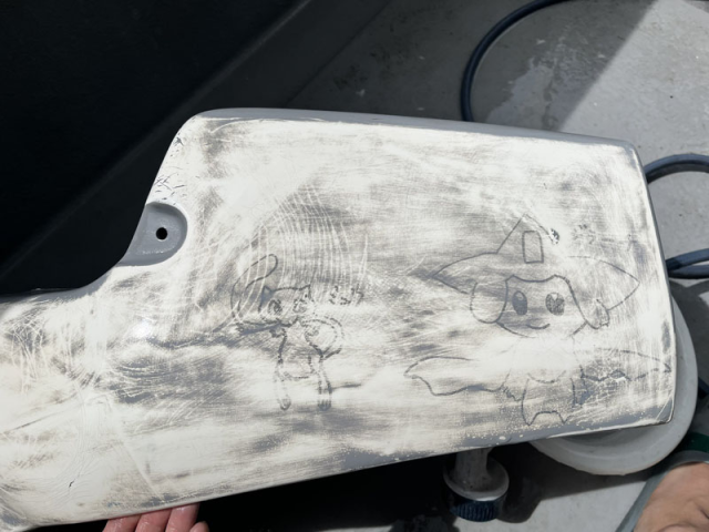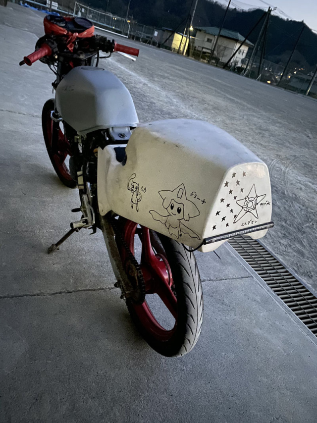 日本一名網友けゆる(@keyuru_nc29)前些日子在Mercari上買到了一個中古的機車座罩並想來補修一下,而補修的過程中意外發現上面有寶可夢的繪圖,有夢幻、基拉祈等,這或許是前一位使用者曾經畫過的圖,之後用補土掩蓋過去放到Mercari上拍賣。