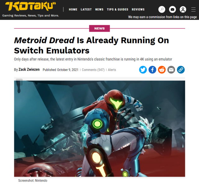 不過,在《Kotaku》寫出這篇評論後,也隨即在Twitter糟到一些網友的抨擊,畢竟在2021年時,該媒體就曾在自家網站上宣揚盜版,報導「《密特羅德:生存恐懼》(メトロイド ドレッド)能夠在模擬器上遊玩」這件事而引起爭議,甚至還被任天堂官方列入黑名單,更不用說在《薩爾達傳說 王國之淚》發行以前,《Kotaku》還將外流的遊戲內容報導出來。